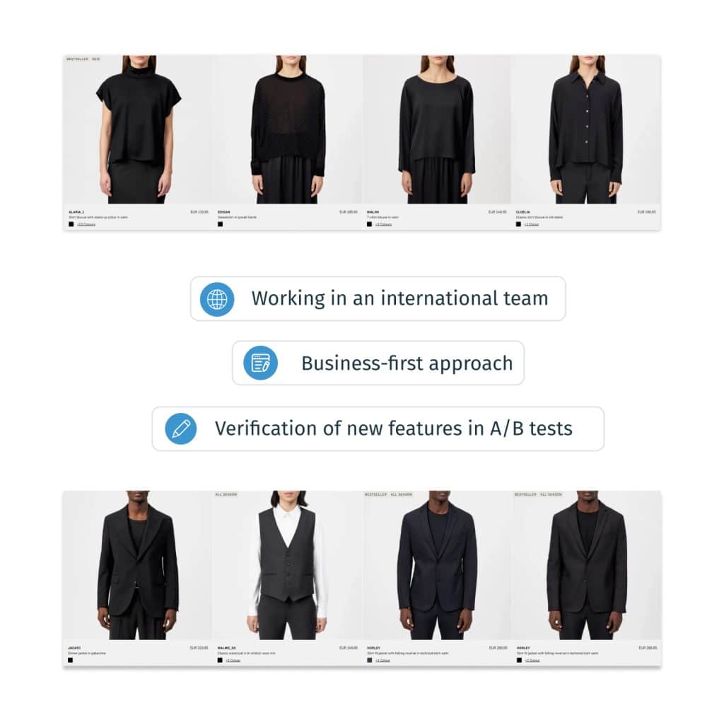 We carried out the project in three-week sprints with an international team. This allowed us to maintain the right pace and respond to business needs on an ongoing basis. The foundation was laid at joint workshops, during which we learned about the DNA of the DRYKORN brand and precisely defined the goals to be achieved by the new store.
