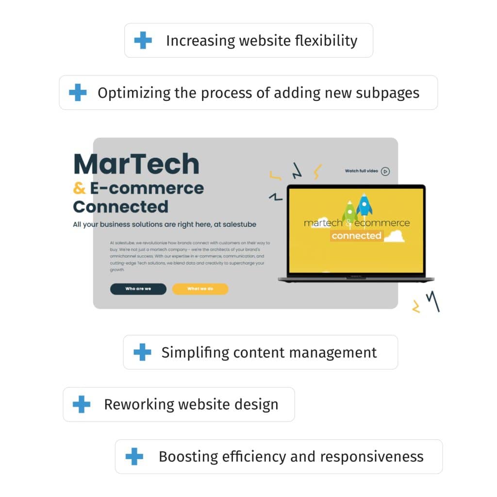 The implementation of Storyblok has improved content management, allowing quick changes and adaptation of the site to current needs. SEO optimization helped increase the site’s visibility in search results, which increased organic traffic and improved conversions. By using the right technologies and an approach based on flexibility and optimization, Salestube received a site that dynamically supports their operations and grows with the needs of the business.