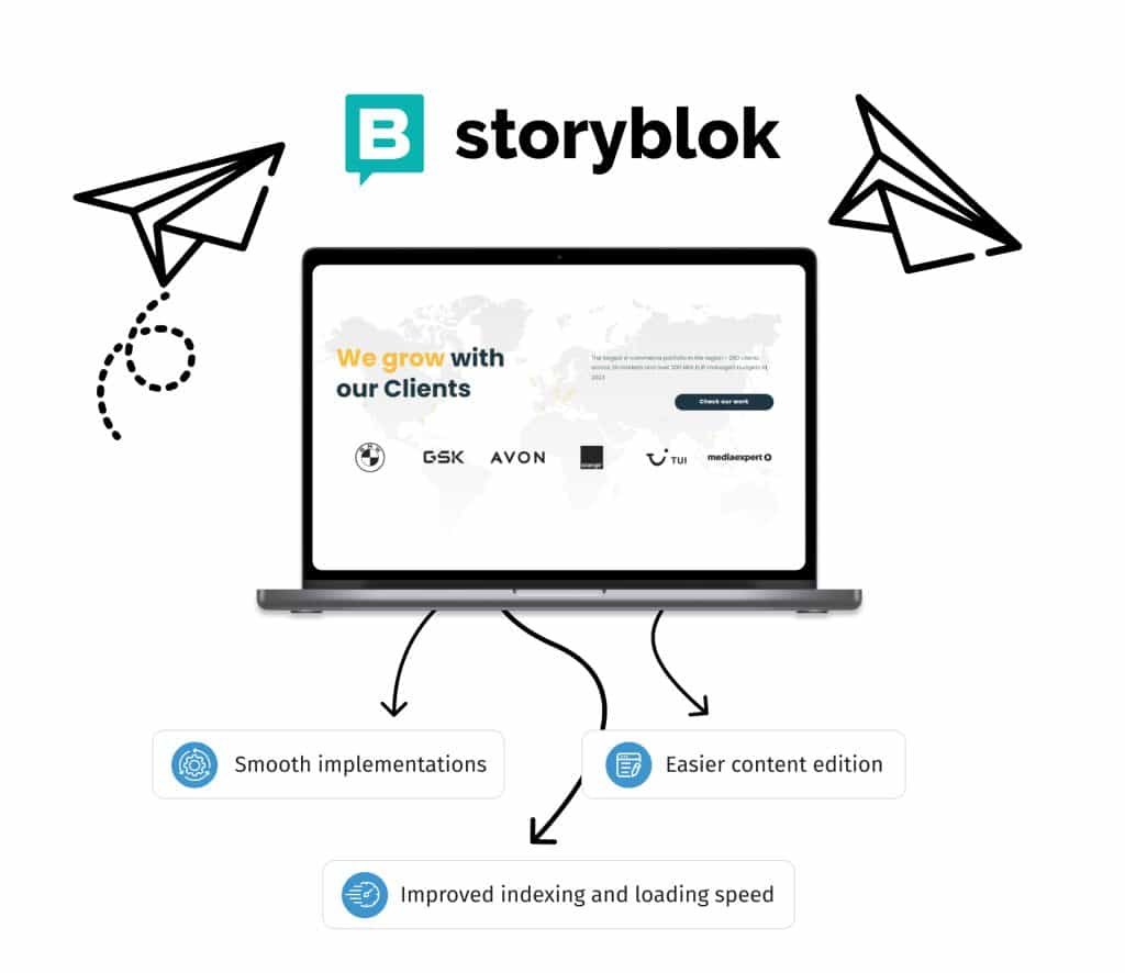 Migrating to Storyblock required process adjustments and a new approach to content management. A key challenge was SEO and performance optimization – we implemented server-side rendering (SSR) and caching mechanisms to improve indexing and loading speed.